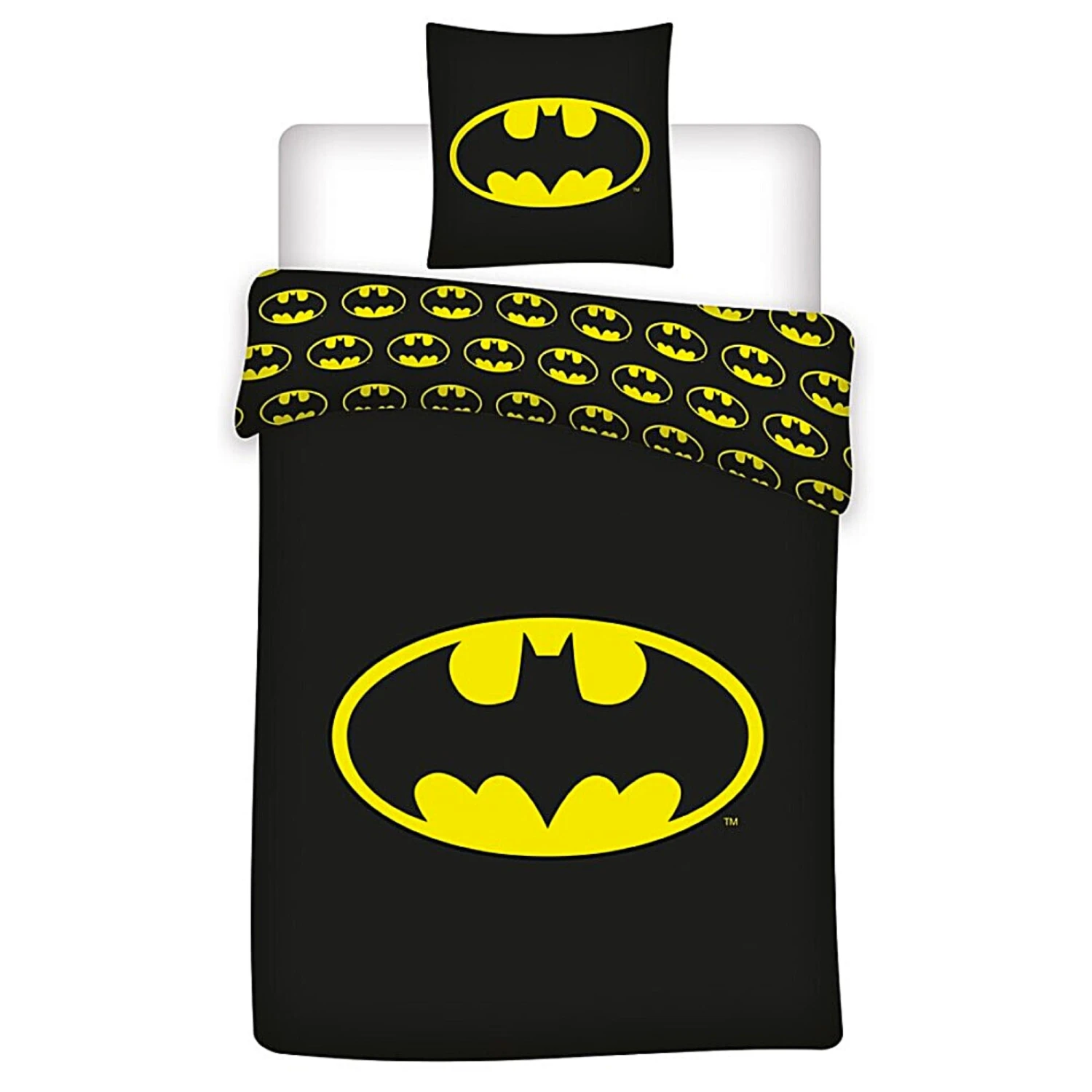 Schlichtes & modernes Bettwäsche-Set im Batman Design. Auf der Vorderseite befindet sich ein großes Logo des DC Comics Helden. Die Rückseite ist mit einem All-over-Print versehen.