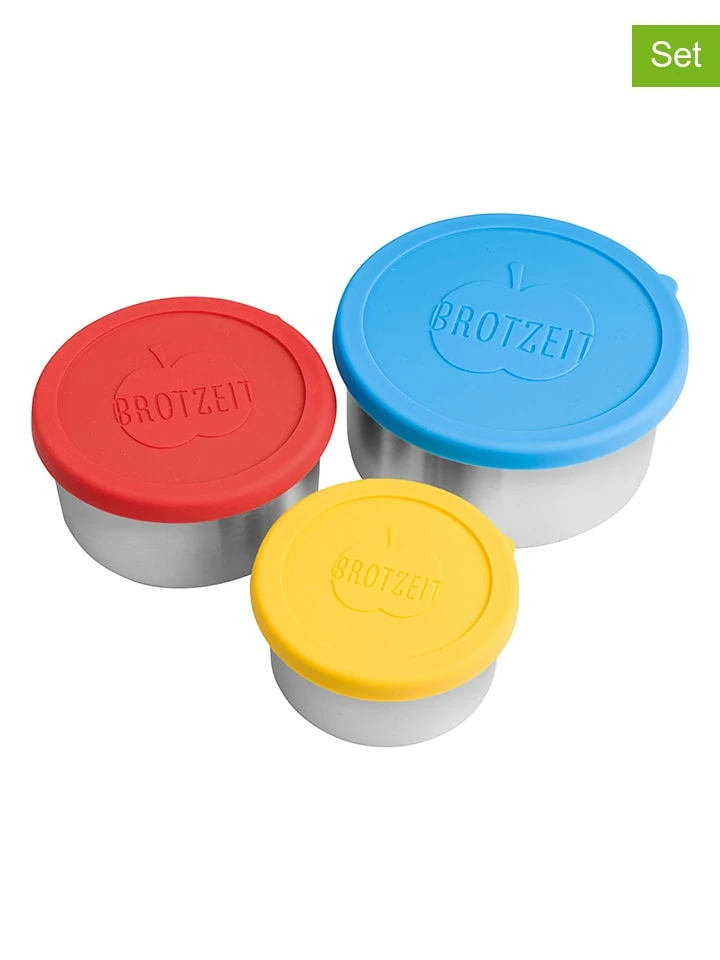 – 3 Edelstahldosen in verschiedenen Farben und Formen