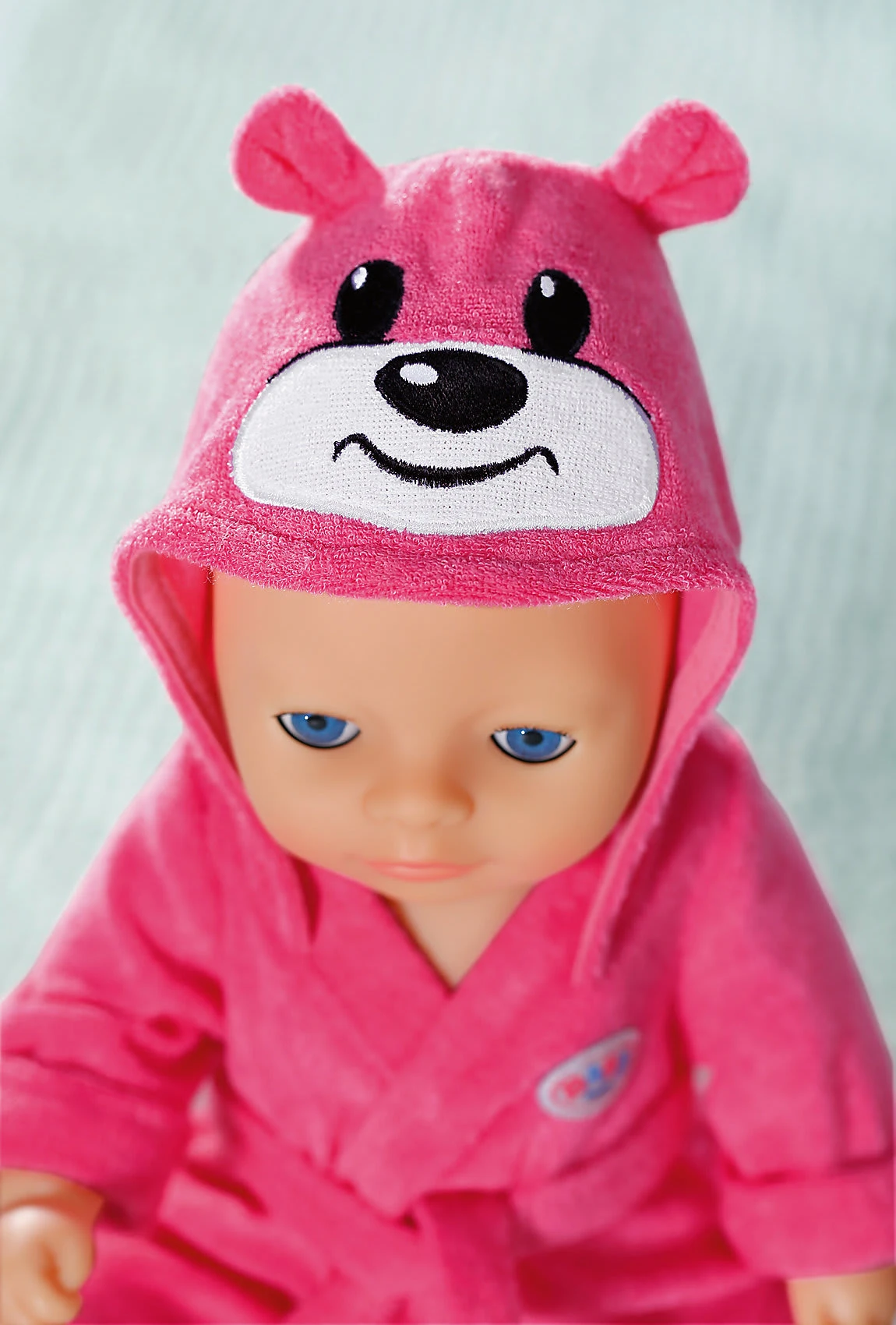 Nach dem Baden werden die BABY born Puppen in den kuscheligen Bademantel von Zapf eingepackt. BABY born Little Bademantel 36cm von Zapf passend für BABY born Puppen bis 36cm Kapuze mit Bärchengesicht inkl. Kleiderbügel Damit es die Puppenkinder nach dem Baden auch schön warm haben ist der BABY born Bademantel besonders kuschelig. Dank easy fit Style können selbst kleine Kinderhände den Bademantel leicht anbringen. Damit der Bademantel schnell aufgeräumt ist, ist ein Kleiderbügel im Lieferumfang enthalten.