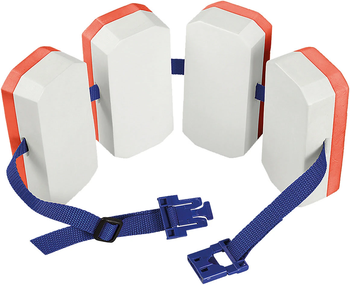 Die vier Auftriebskörper der tollen Schwimmhilfe von BEMA sorgen für gleichmäßigen Auftrieb, so kann sich Ihr Kind leicht über Wasser halten und sich allein auf die Bewegungsabläufe des Schwimmens konzentrieren. Der Schwimmgürtel bietet volle Bewegungsfreiheit. Auch an Land ist er bequem zu tragen und muss zum Spielen nicht immer abgelegt werden. Dank des Sicherheitsverschlusses kann der Gürtel sich nicht zufällig lösen oder vom Kind geöffnet werden. Nun können die warmen Tage wieder kommen – der Badespaß ist garantiert! Die Schwimmkörper sind PVC-frei und können an das Gewicht Ihres Kindes sowie dessen Schwimmfortschritt einfach angepasst werden. So können Sie durch das Abziehen, der Auftriebskörper die Unterstützung für das Kind reduzieren. Der Nylongurt ist an die Größe Ihres Kindes durch einfaches Ziehen passgenau einstellbar und gewährleistet damit einen sicheren Halt auch im Wasser.