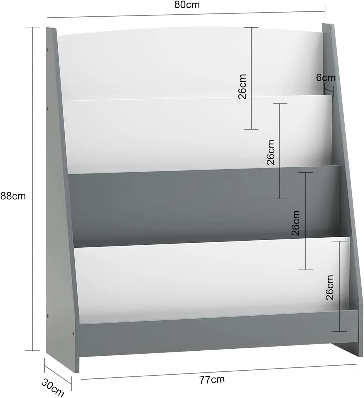 Sie können dieses Regal auch verwenden, um es neben das Sofa, Tagesbett oder ins Schlafzimmer stellen und Ihre Lieblingsmagazine stilvoll an einem gut zugänglichen Ort aufbewahren! Das Kinder-Bücherregal passt zu nahezu jeder Inneneinrichtung.