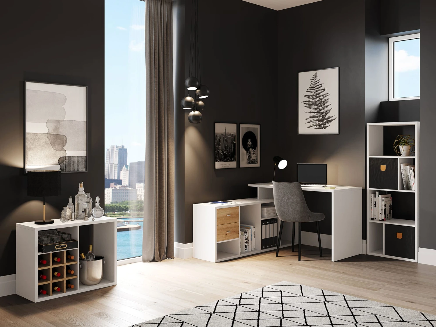 Dieses praktische Regal mit 3 Fächern kann als Raumteiler oder einfaches Bücherregal verwendet werden. Der praktische Bareinsatz der zu diesem Set gehört, bietet genügend Platz für 9 Flaschen. Das Regal mit asymmetrischer Fachanordnung ist in einem zeitlos modernen Stil gehalten. Die Regale sind in verschiedenen Grössen verfügbar. Ob für Zuhause oder fürs Büro, die Regale der Systemserie ‚FORTUNA‘ bieten viele funktionale Kombinationsmöglichkeiten für Ihr individuelles Einrichten und passen zu jedem Wohntyp. Alle ‚FORTUNA‘ Wohnelemente sind farblich und im Design aufeinander abgestimmt. Der Artikel wird ohne Dekoration inkl. Bareinsatz geliefert. Alle Regale können mit den verschiedenen Einsätzen oder dem Schreibtischanbau personalisiert werden.