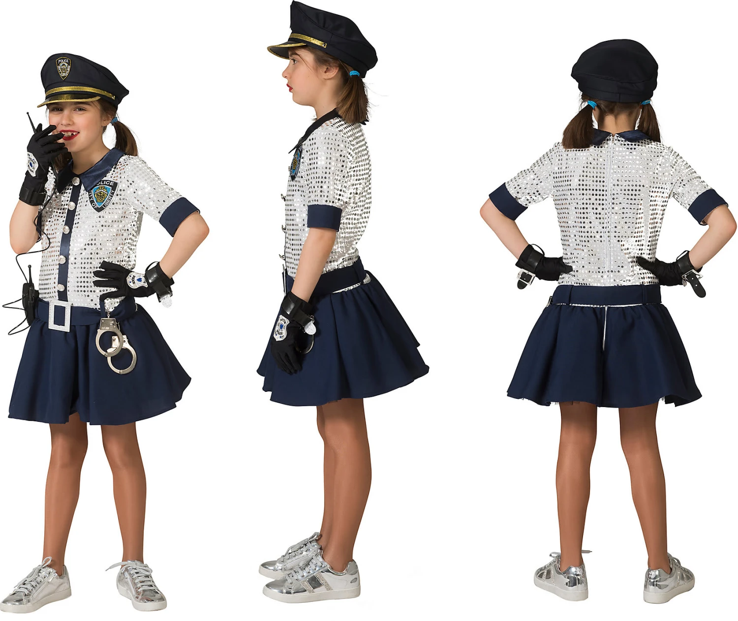Bitte beachten Sie, dass die Mütze, die Handschuhe, die Handschellen und das Walkie-Talkie nicht im Lieferumfang enthalten sind. Es wird lediglich das Kleid geliefert.