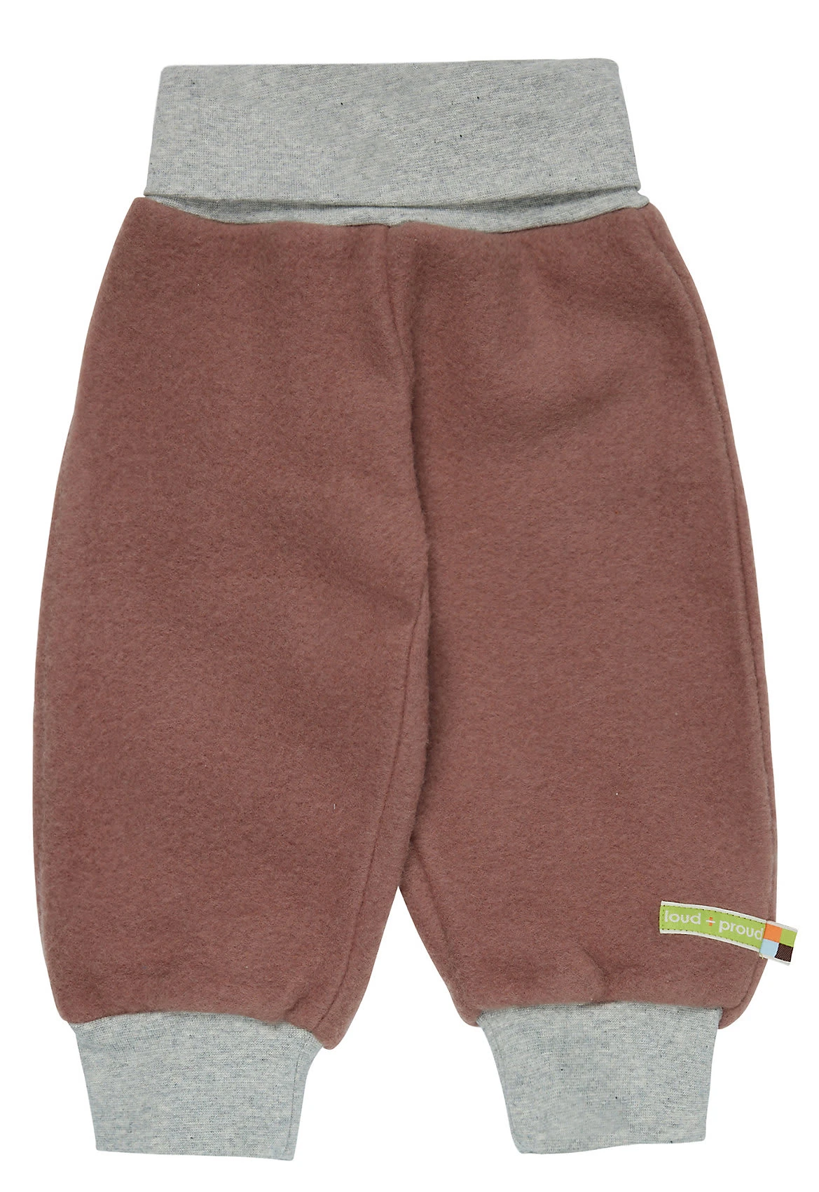 Hose aus dickem, warmen Woll-Fleece. Saum mit kontrastfarbigem Bündchen. Weicher und elastischer Umschlagbund aus Baumwoll-Feinripp. Logo-Etikett mit Fähnchen am Saum. Waschbar bei 30°C im Wollwaschgang. Nur kurz bei niedriger Drehzahl schleudern und nass in Form ziehen. Made in Portugal