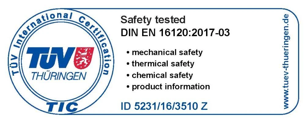 Wir haben die Sitzerhöhungen so entwickelt, dass sie nicht nur einfach zu bedienen, sondern auch sicher sind: Der TÜV Thüringen hat die Sitzerhöhungen unter anderem auf mechanische und chemische Sicherheit geprüft und das Prüfsiegel „Safety tested“ verliehen. Phthalate, BPA und PVC sind im Material nicht enthalten.