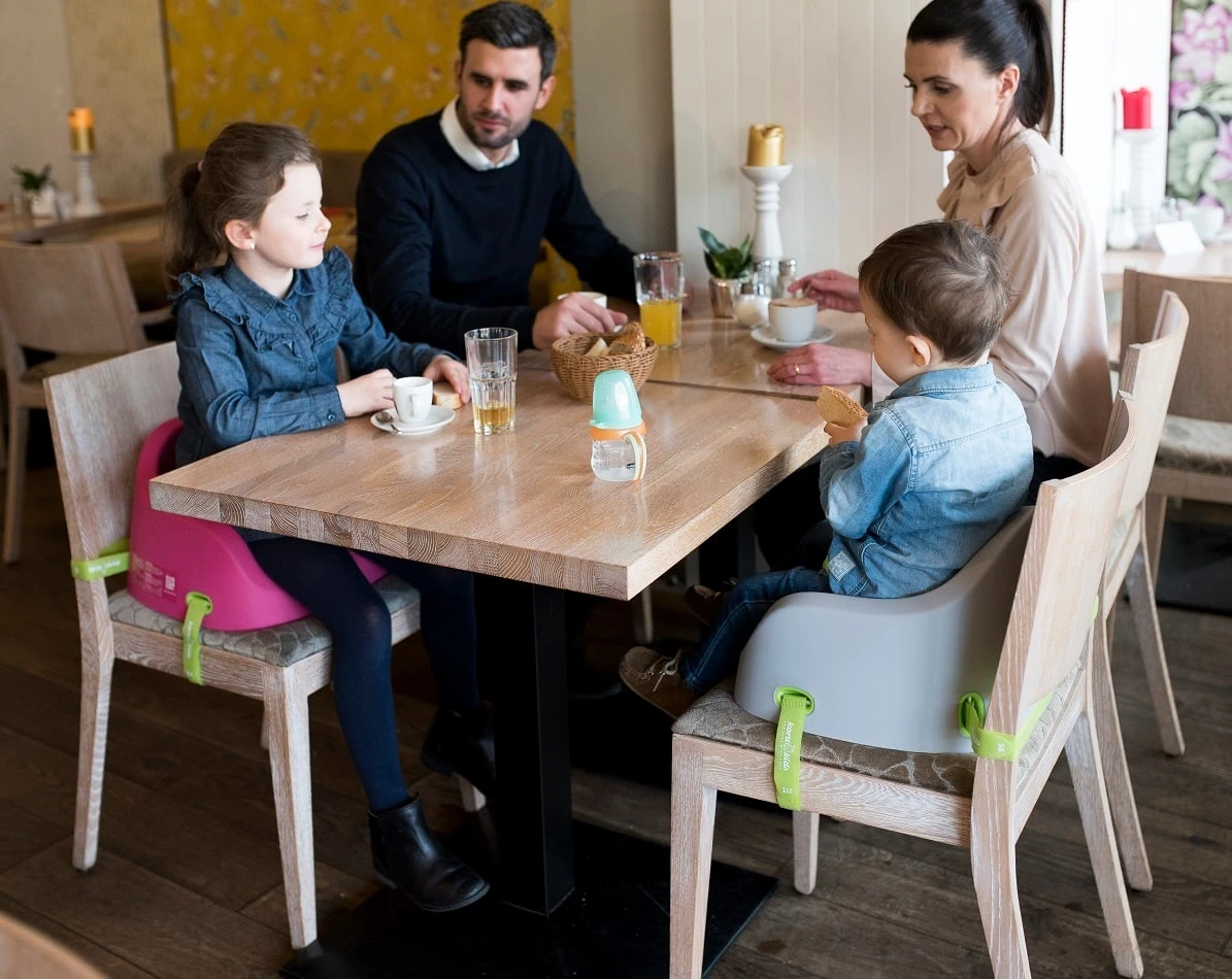 Egal ob zu Hause oder unterwegs: Mit Koru Kids Boostern sitzen Ihre Kinder höher am Tisch und die Familienessen sind entspannt. Innerhalb von Sekunden können Sie aus jedem Stuhl einen Kinderstuhl machen: Den Booster auf den Stuhl setzen, mit den Klettbändern am Stuhl fixieren – fertig!