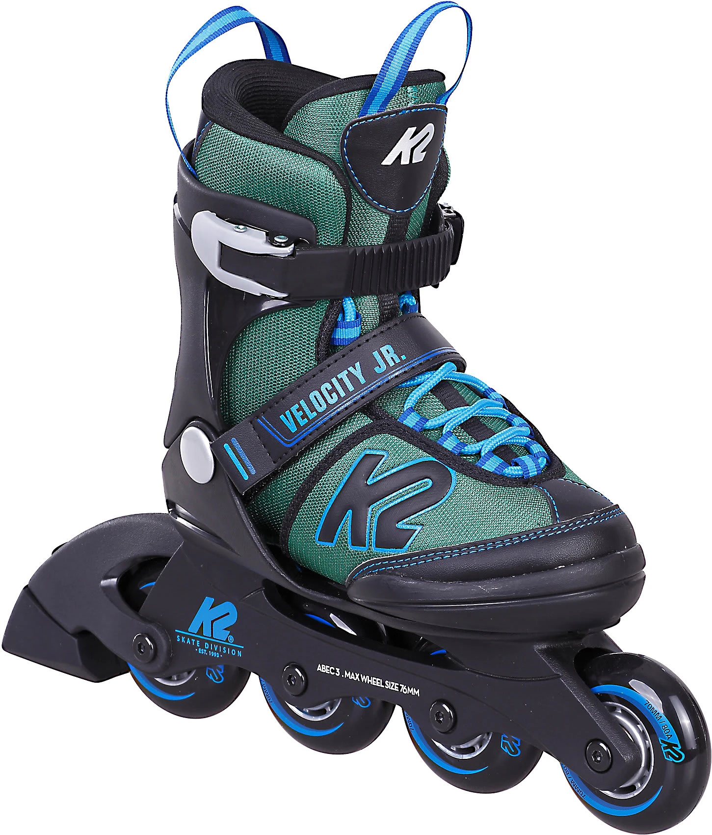 Die Inliner „VELOCITY JR“ aus dem Hause K2 sind nicht nur tolle Hingucker, sondern dank der fünf einstellbaren Größen auch für eine lange und mitwachsende Nutzung ausgelegt. Der K2-Softboot ermöglicht eine besonders gute Passform und eine hohe Stabilität. Dazu kommt die Kombination aus Schnürung, einer individuell regulierbaren Schnalle und einem Klettverschluss, die dafür sorgt, dass die Inliner perfekt sitzen. Außerdem ist der Zehenbereich verstärkt.