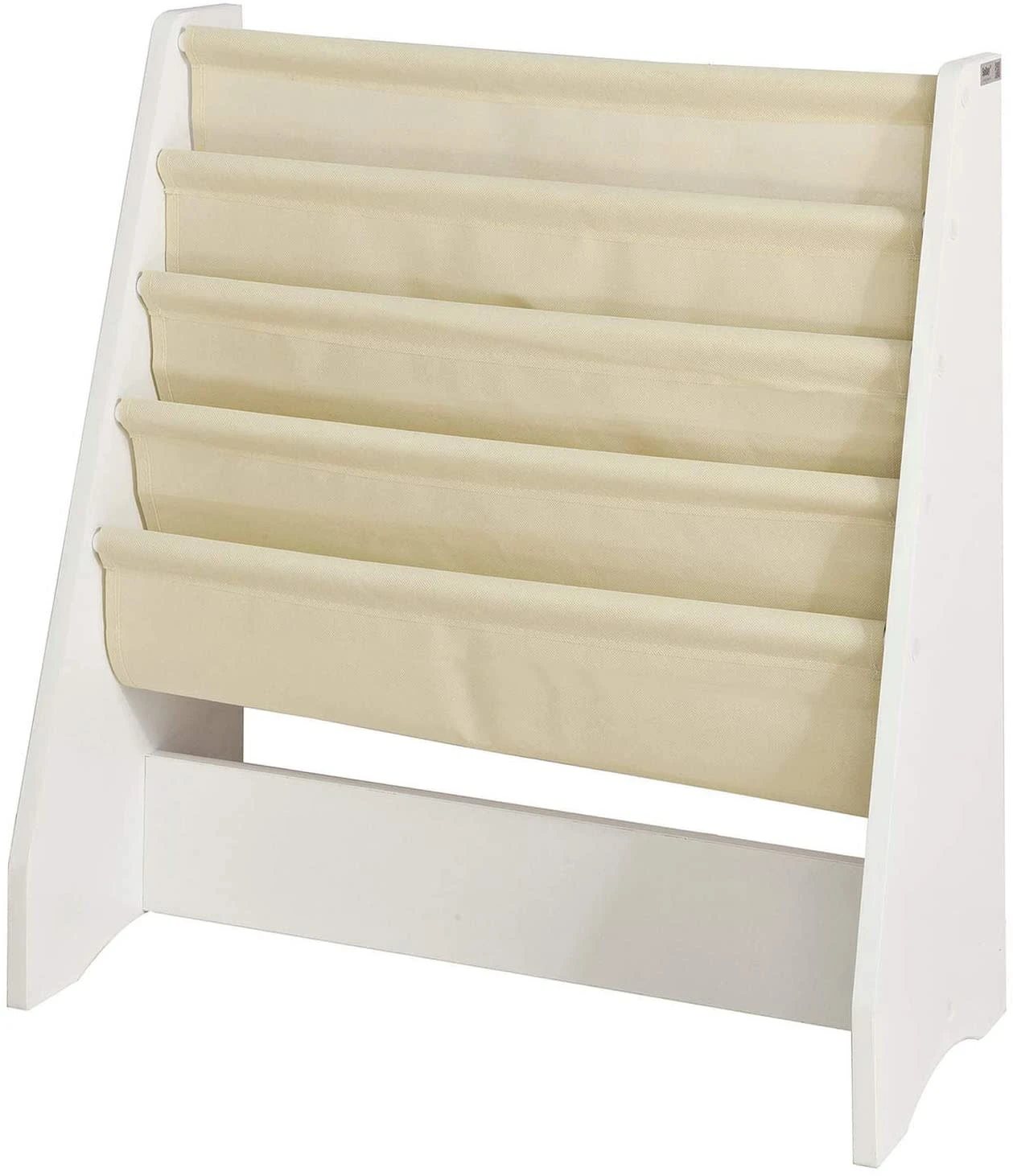 Gestell aus umweltfreundlicher Spanplatte in Weiß, Bücherfächer aus Polyester.