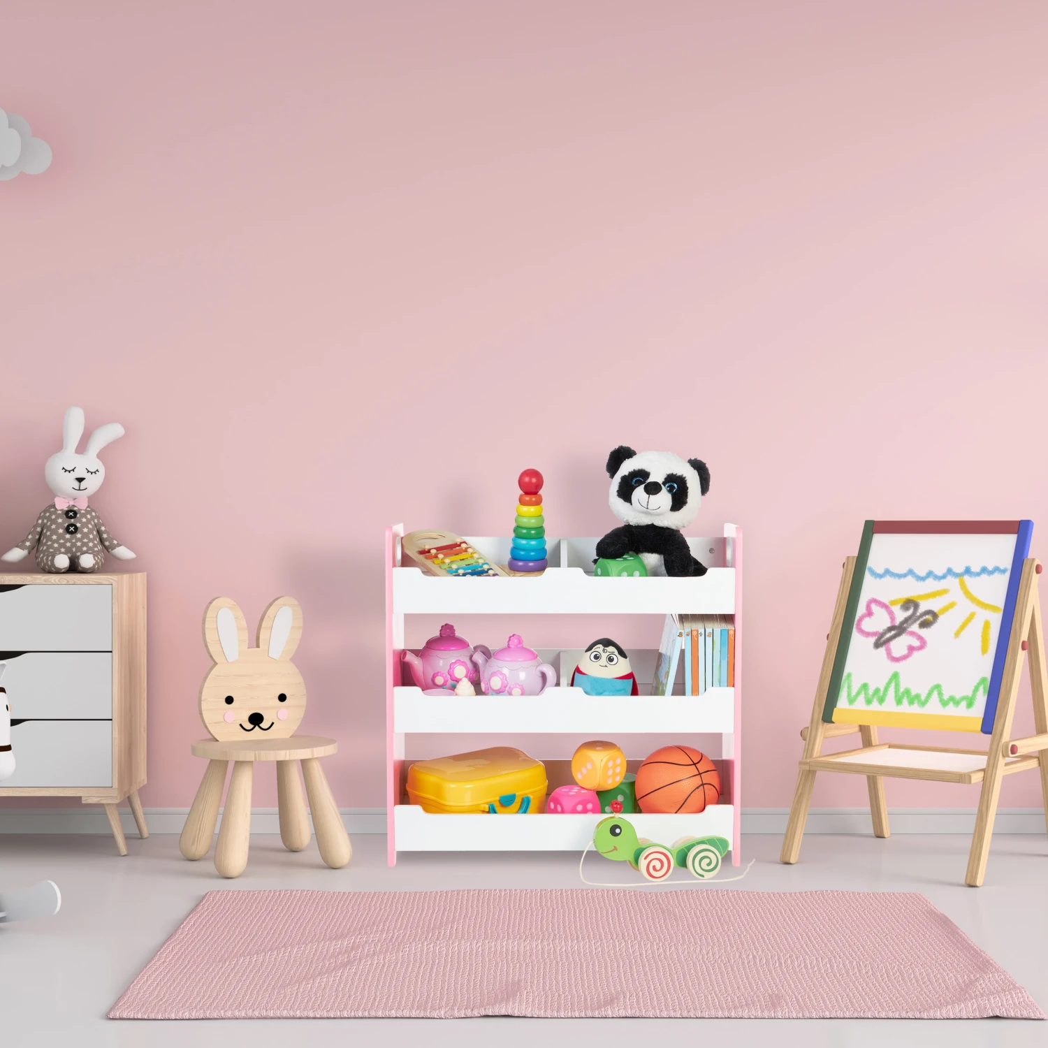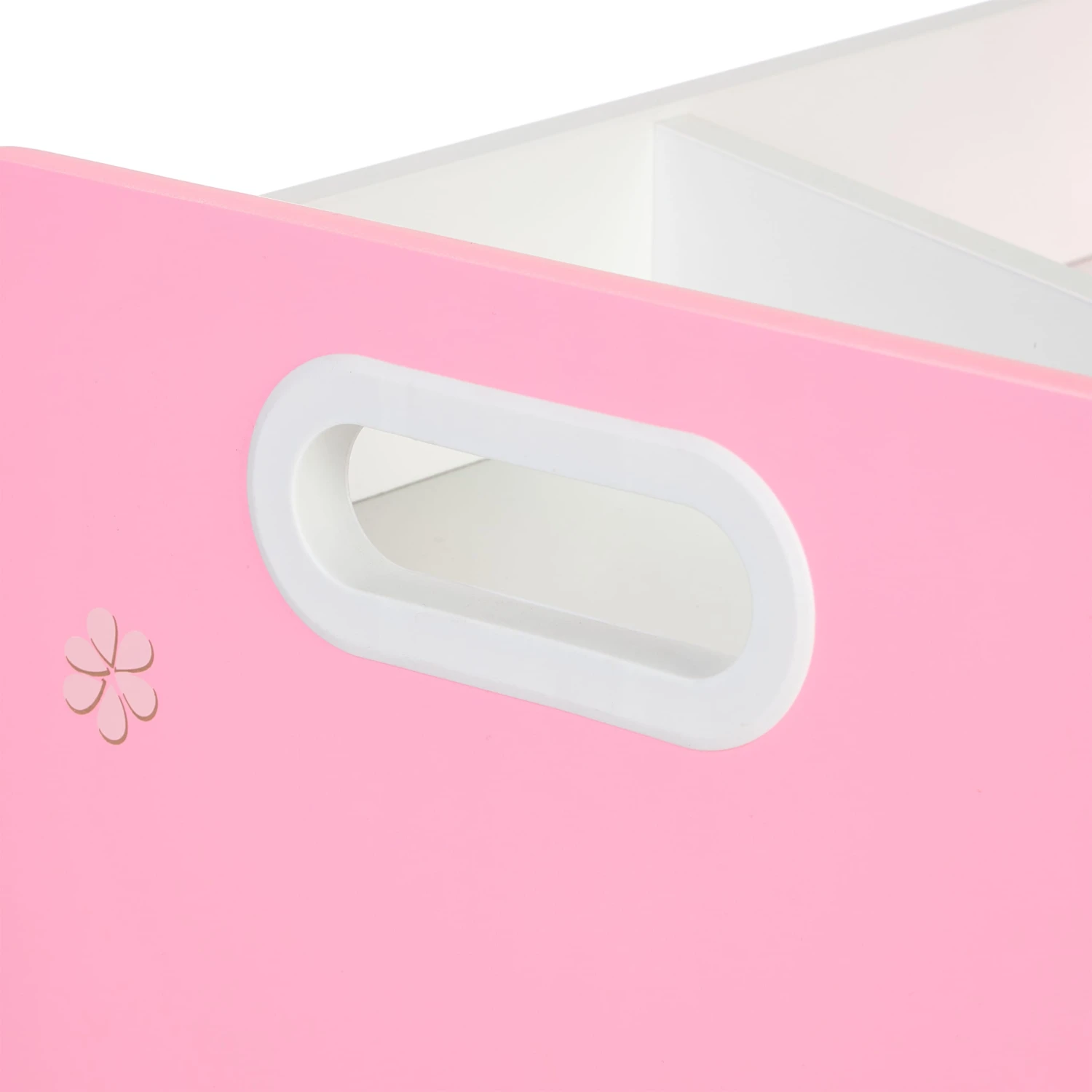 Das Spielregal eignet sich ideal zur Spielzeugaufbewahrung im Kinderzimmer. In 5 Fächern steht ausreichend Platz zur Verfügung, um Kuscheltiere, Bücher und Spielsachen ordentlich zu verstauen. Dank der kindgerechten Höhe können bereits Kleinkinder das stabile Spielsachenregal selbstständig aus- und einräumen. Das niedliche Schwanen-Motiv wird Mädchen begeistern und macht das Spielzeugaufbewahrungsregal zu einem schönen Blickfang im Kinderzimmer.