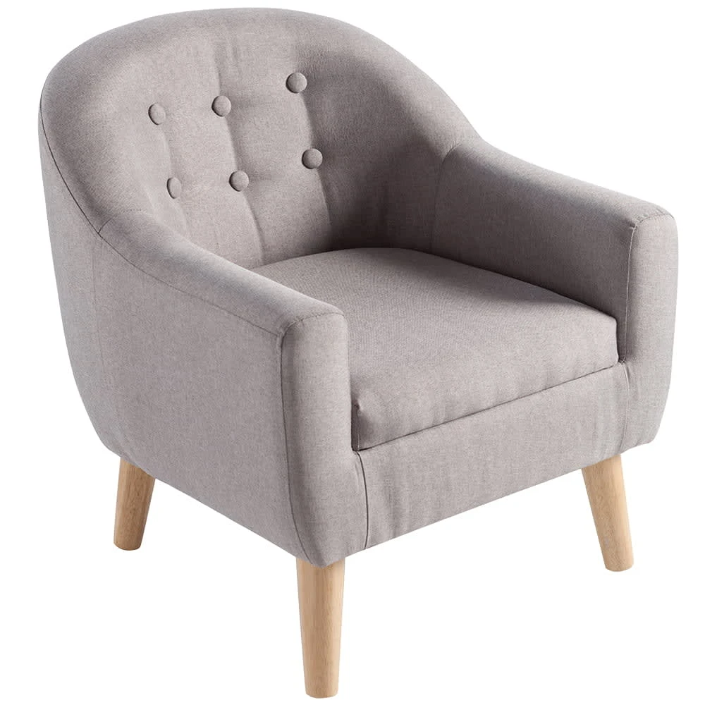 Der moderne Sessel für Kinder ist aus hochwertigem Material genäht und für Kinder bis 45 kg geeignet. Für sicheren Stand sorgen die Holzfüße.