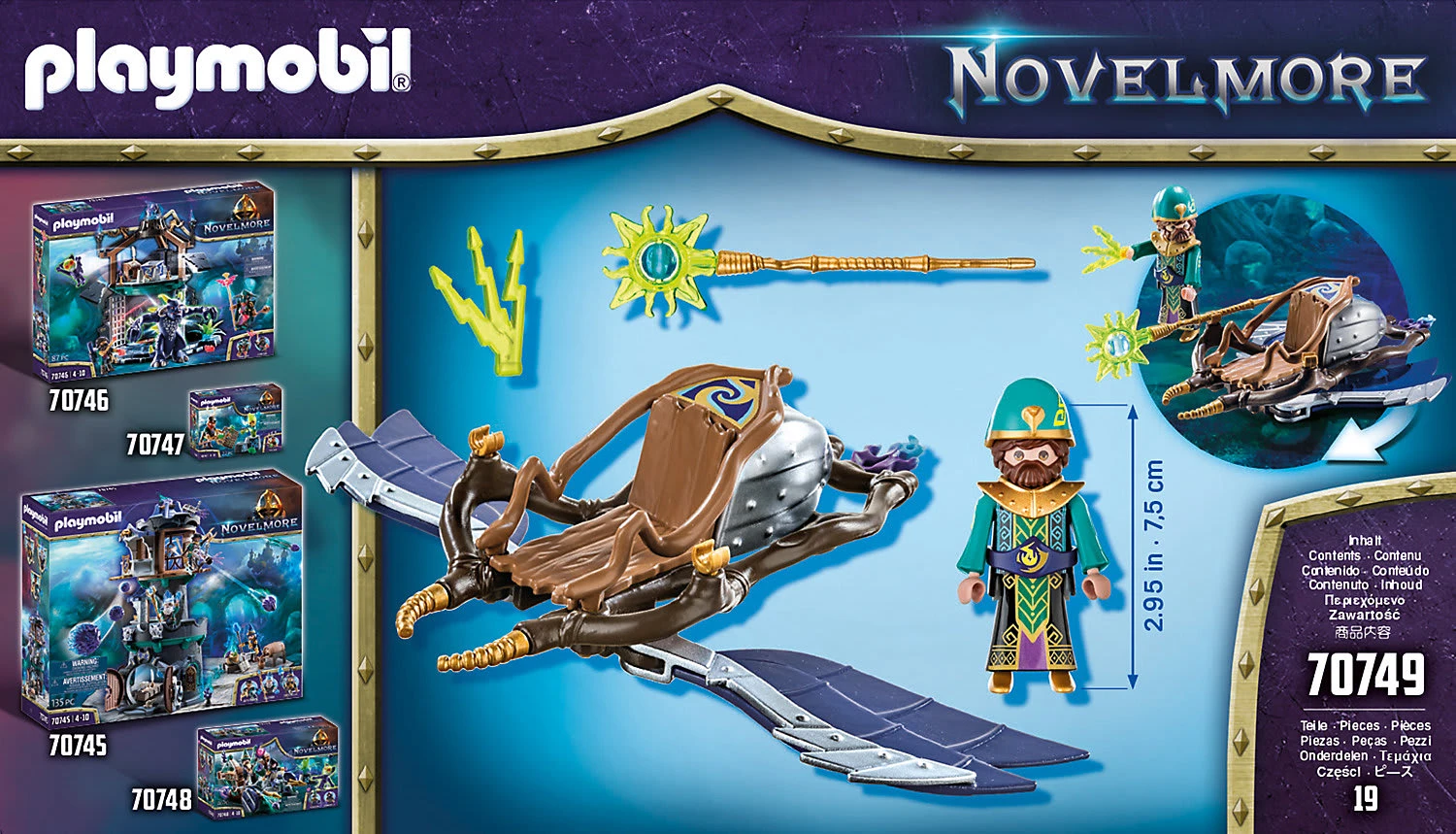 Tauche ein in die fantastische Welt des mächtigen Zauberers Timithor – des Wächters der Zeit! Violet Vale – Zaubererturm (70745) von playmobil mit magischen Drehmechanismen, Geheimverstecken und mächtigen Abwehrmechanismen ab 4 Jahren geeignet 135 Teile Im sagenumwobenen Zauberturm von Violet Vale befindet sich die Zauberwerkstatt von Timithors Freund und Wegbegleiter Sagithor. Hier werden Zaubersprüche geübt und magische Tränke gebraut. Der mystische Turm birgt viele Geheimnisse, sogar ein wertvoller Schatz liegt hier verborgen. Die funkelnden Kristalle zu erbeuten ist jedoch fast unmöglich, denn das Tor im Erdgeschoss wird durch ein Zauberschloss verriegelt, das nur von echten Magiern geöffnet werden kann. Vom Turm aus hält Zaubermeisterin Crysthella durch das Fernglas Ausschau nach Gefahren. Sollten sich Dämonen oder dunkle Zauberer dem Turm nähern, werden sie mit Geschossen aus der Kanone begrüßt. Das Spielset enthält die Novelmore-Zauberer Sagithor und Jutsithor und Zauberin Crysthella, einen Zaubererturm mit Drehmechanismus und Geheimversteck sowie schussfähiger Kanone, Zauberkessel, Zauberbuch, Kristalle und viele weitere fantastische Extras für magische Spielstunden.