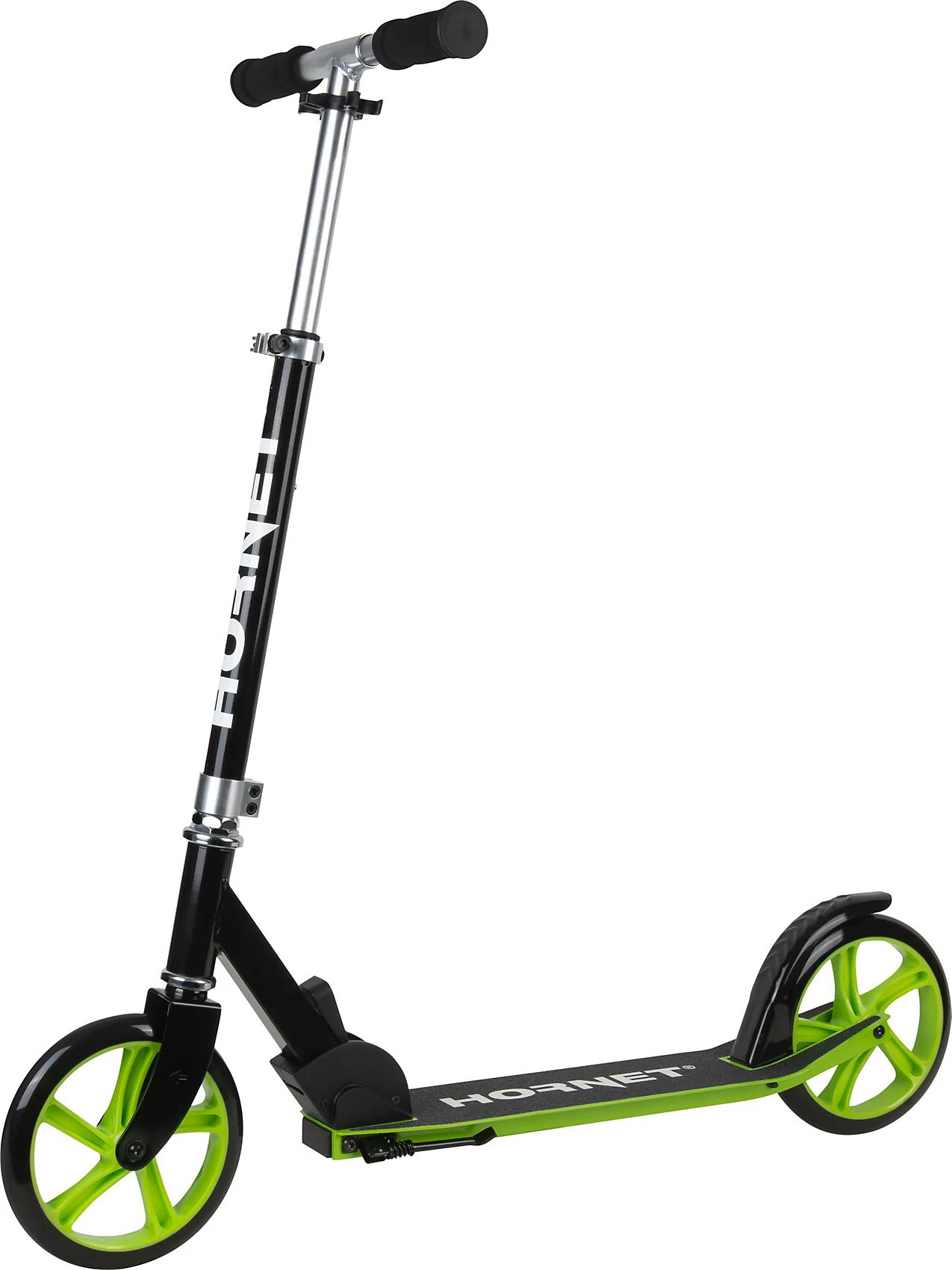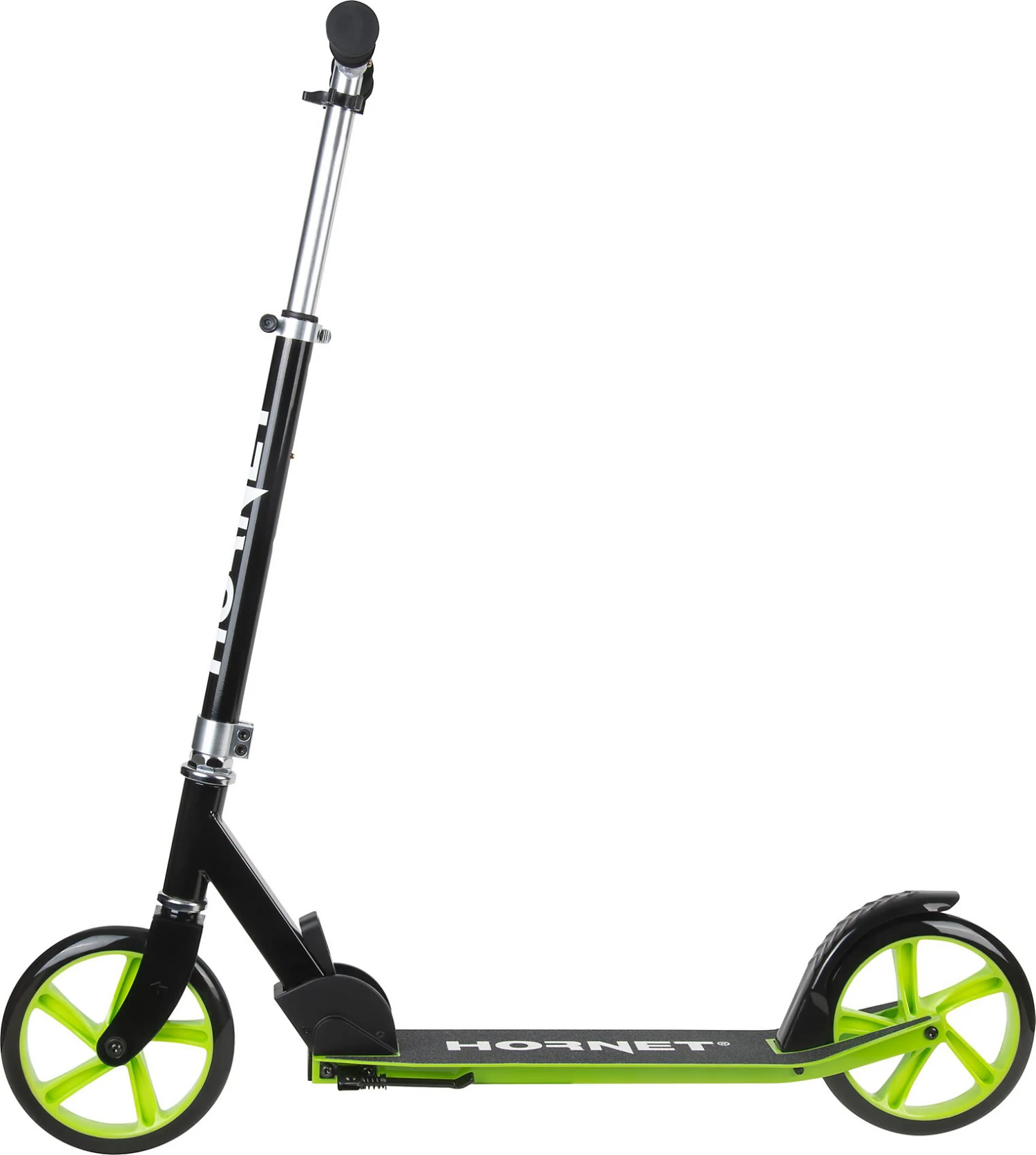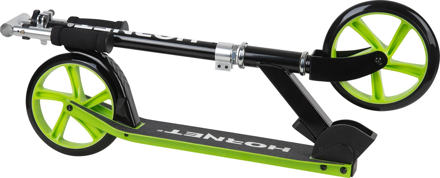 Stylisch und funktional! Mit dem Hornet Scooter 200 können die Alltagswege lässig absolviert werden und auch Ausflügen in den Park, oder kleinen Stunts steht nichts im Wege. Der Scooter hat einen praktischen Klappmechanismus und kann einfach transportiert und mitgenommen werden. Die stabilen PU-Rollen punkten mit leichtläufigen ABEC 7 Kugellagern und der Lenker kann in der Höhe angepasst werden. Für Trittsicherheit sorgt das angenehm breite Deck mit rutschhemmendem Belag und der Seitenständer macht das Abstellen leichter. Gebremst wird mit der Hinterradbremse. Los geht es zum coolen Cruisen!