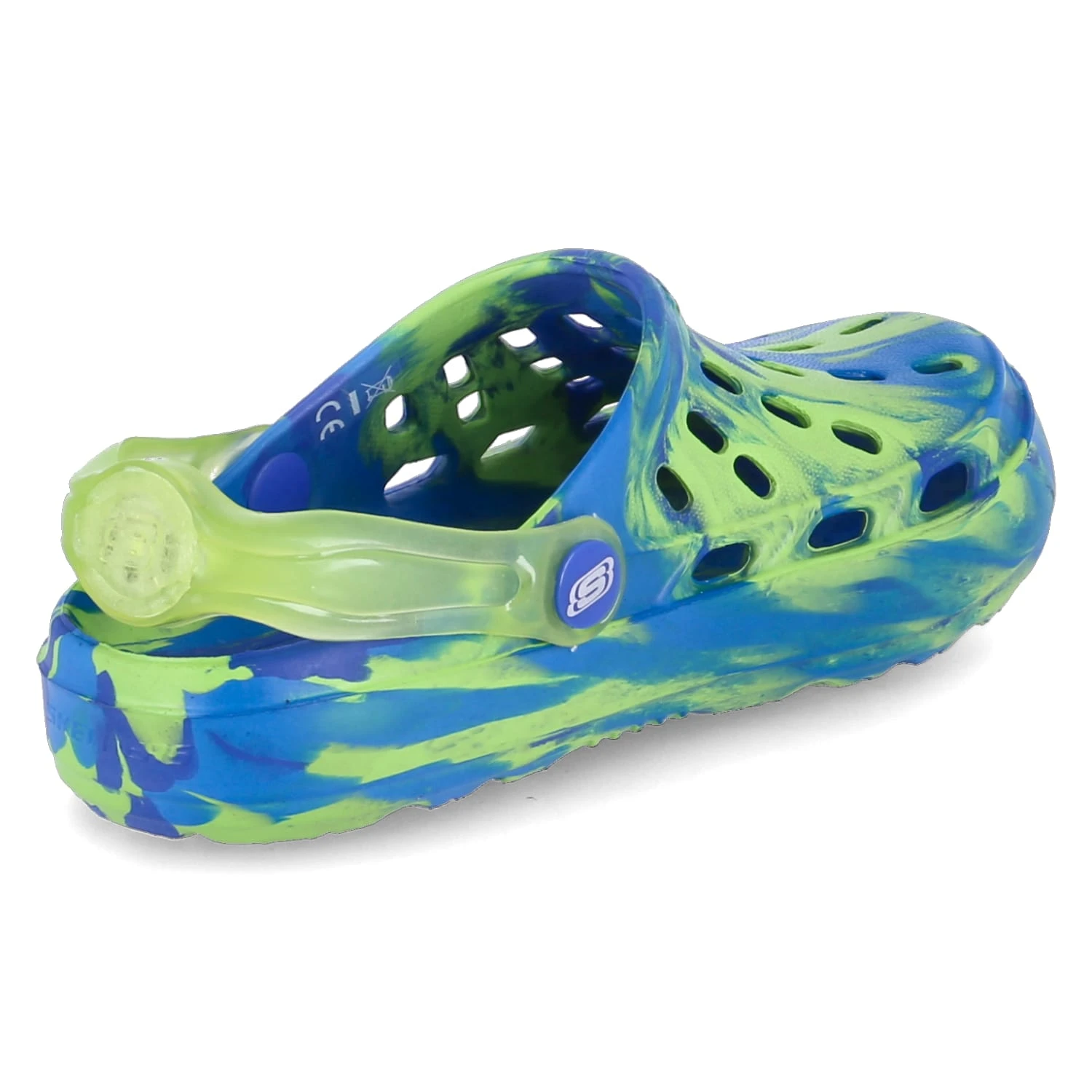 Skechers Jungen Badelatschen/ Badeschuhe TRANSLUMINATOR Blau/Grün Synthetik – geringes Gewicht – klappbarer Fersenbügel mit blinkender LED – flexible Laufsohle – Outcuts