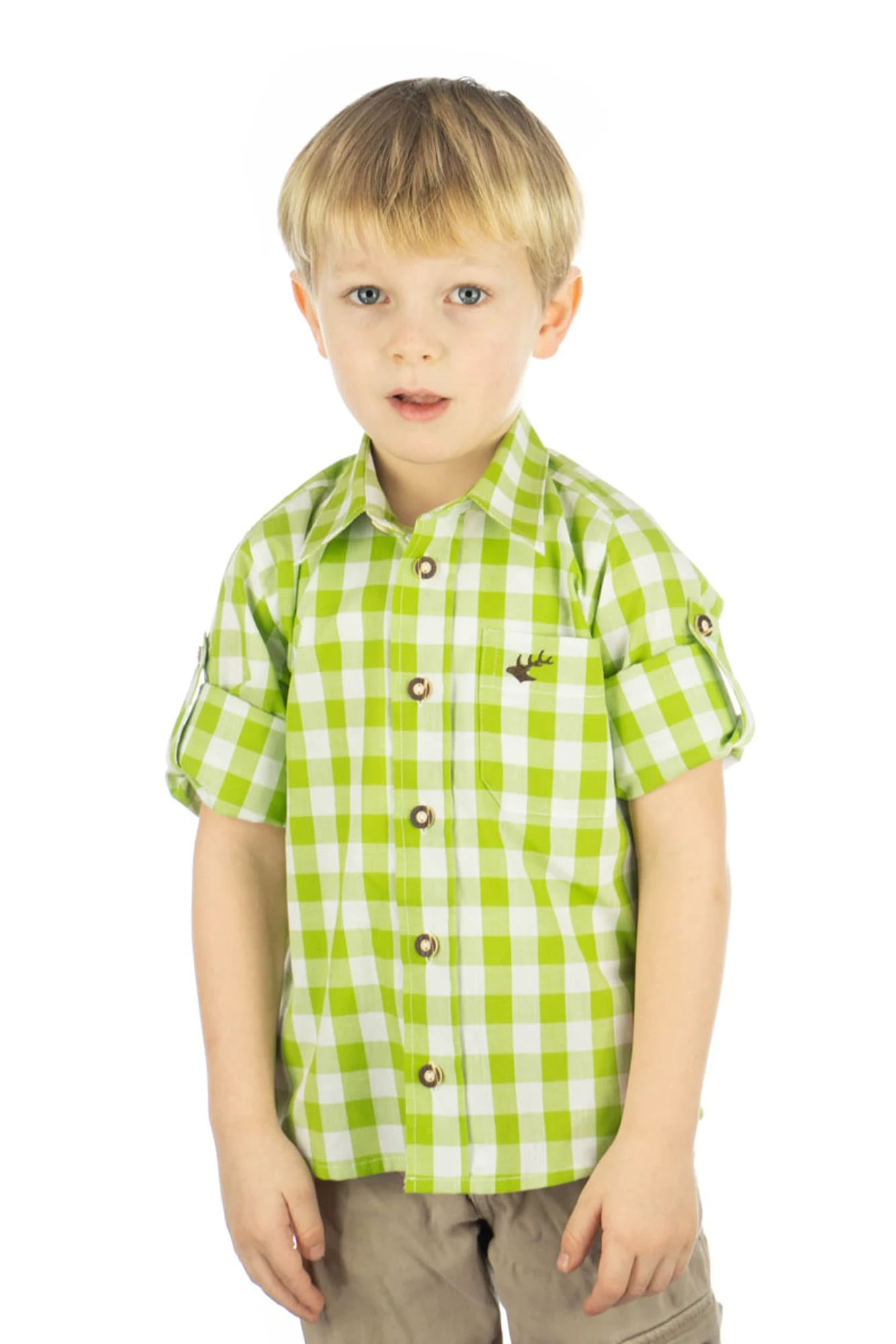 Kleine Kerle – große Karos. Besonders frisch wirken die fünf verschiedenen Farben; jeweils kombiniert mit klarem Weiß. Und sie haben alles, was ein Trachtenhemd ausmacht: Knöpfe in Hirschhorn-Optik, eine kleine Stickerei auf der Brusttasche und bequeme Krempel-Ärmel. Von Größe 74 bis 182 vom Spezialisten OS Trachten erhältlich.