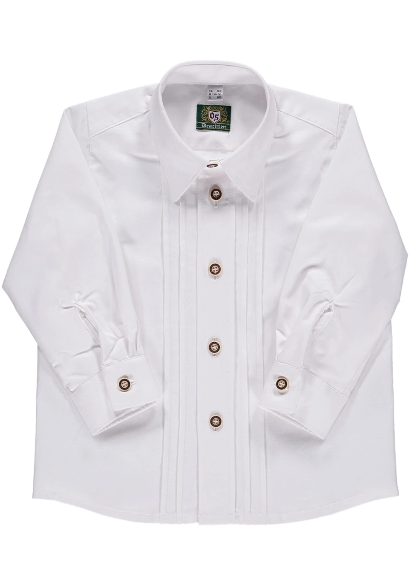 Ganz dezent spielt dieses weiße Hemd mit dem Thema Trachtenmode. Die feinen Biesen entlang der Knopfleiste wirken festlich, Knöpfe in Hirschhornoptik betonen zudem die Knopfleiste. Kombinieren Sie das Hemd zu Lederhose und Janker, zur Jeans oder zum klassischen Anzug – es macht immer eine gute Figur. Typisch OS-Trachten ist das hochwertige Material: reine, schadstoffgeprüfte Baumwolle.