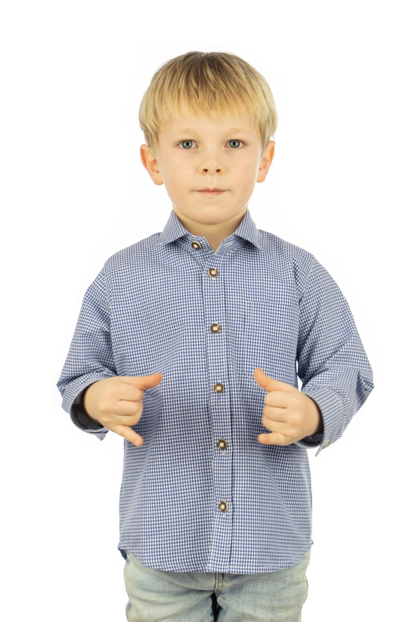 Wie die Großen, so die Kleinen: Das karierte Trachtenhemd mit den typischen Knöpfen in Hirschhorn-Optik gibt es bei OS Trachten schon ab Größe 74. Aus pflegeleichter Baumwollmischung mit langen Ärmeln, die Sie bei Bedarf auch krempeln können. In drei frischen Karos zur Auswahl!
