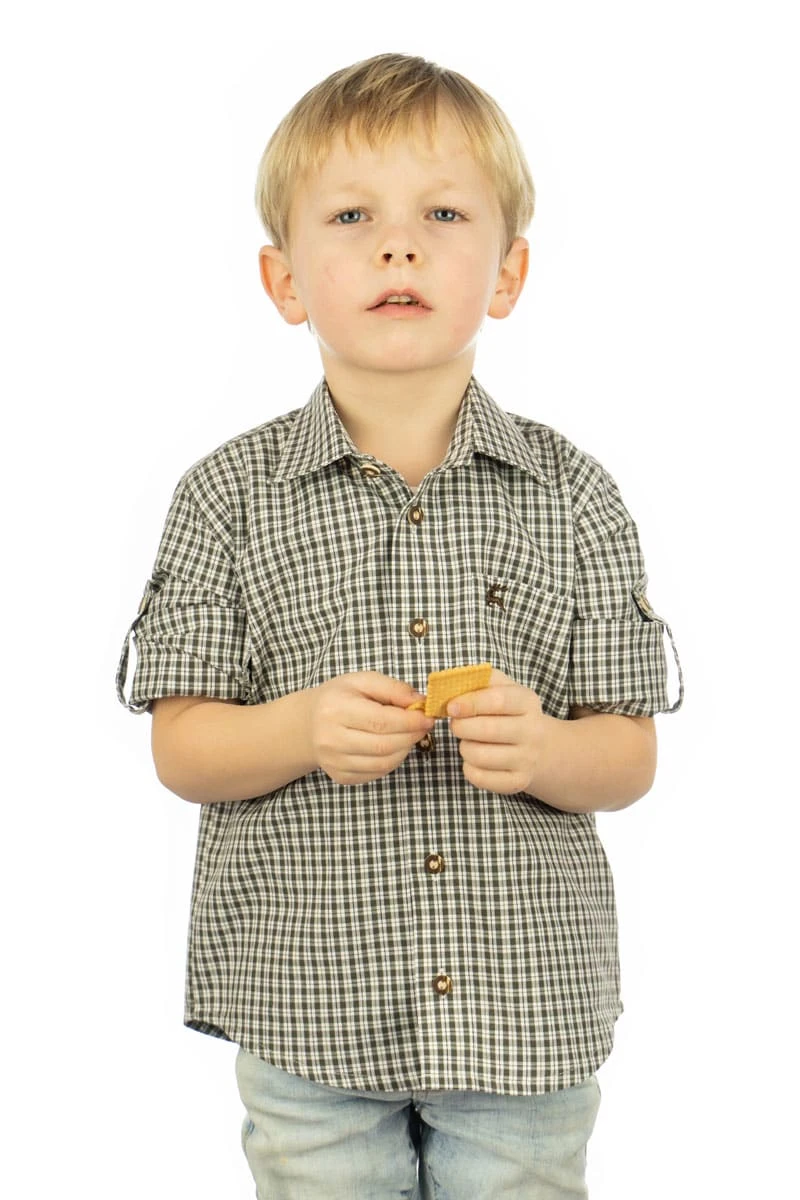 Zur Lederhose und zur Jeans passt dieses Trachtenhemd für Kinder. Die zweifarbigen Karokombinationen sehen frisch aus – und machen gute Laune. Aus pflegeleichtem Mischgewebe mit 60 % Baumwolle, mit allen Eigenschaften, die ein echtes Trachtenhemd benötigt: Knöpfe in Hirschhorn-Optik und Krempelärmel, die mit einer Lasche festgehalten werden. Und in die kleine Brusttasche mit Stickerei passen alle Schätze, die der Nachwuchs auf der Bergtour findet.