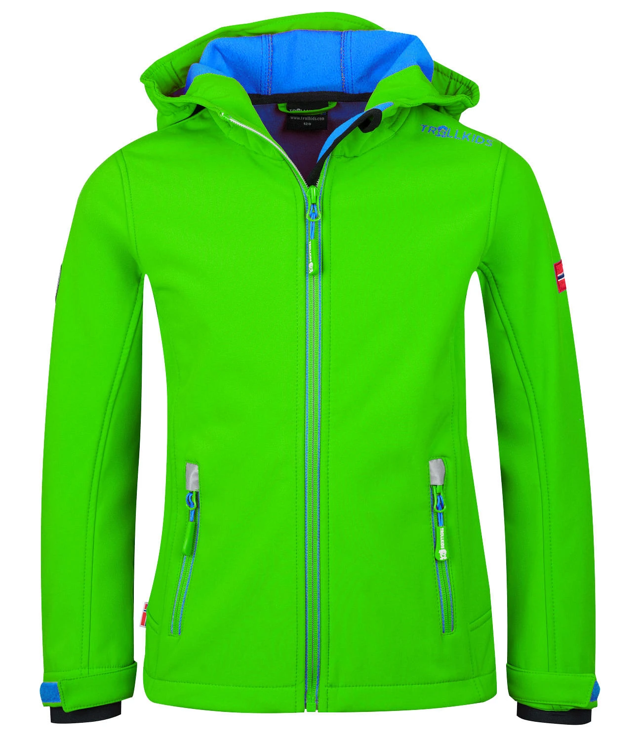 Softshell-Jacke mit Kontrastreißverschlüssen, wasserabweisend und winddicht, flexibel-elastisch und flauschig warm. ,Ein echtes Muss für die Übergangszeit und für Aktivitäten, bei denen ein hoher Bewegungsfreiraum benötigt wird. Darüber hinaus ein modischer Hingucker! Klettverschlüsse an den Armen sorgen dafür, dass die Ärmellänge angepasst werden kann und kein Wind durch die Bündchen dringt. Reflektoren befinden sich vorne und hinten, an den Oberarmen leuchten die norwegische Flagge und der beliebte Lonely Troll aus dem Trollkids-Logo. Wasserdichtes Obermaterial. Material Oberstoff: 100% Stretch-Polyester, Material Futter: 100% Fleece-Polyester.