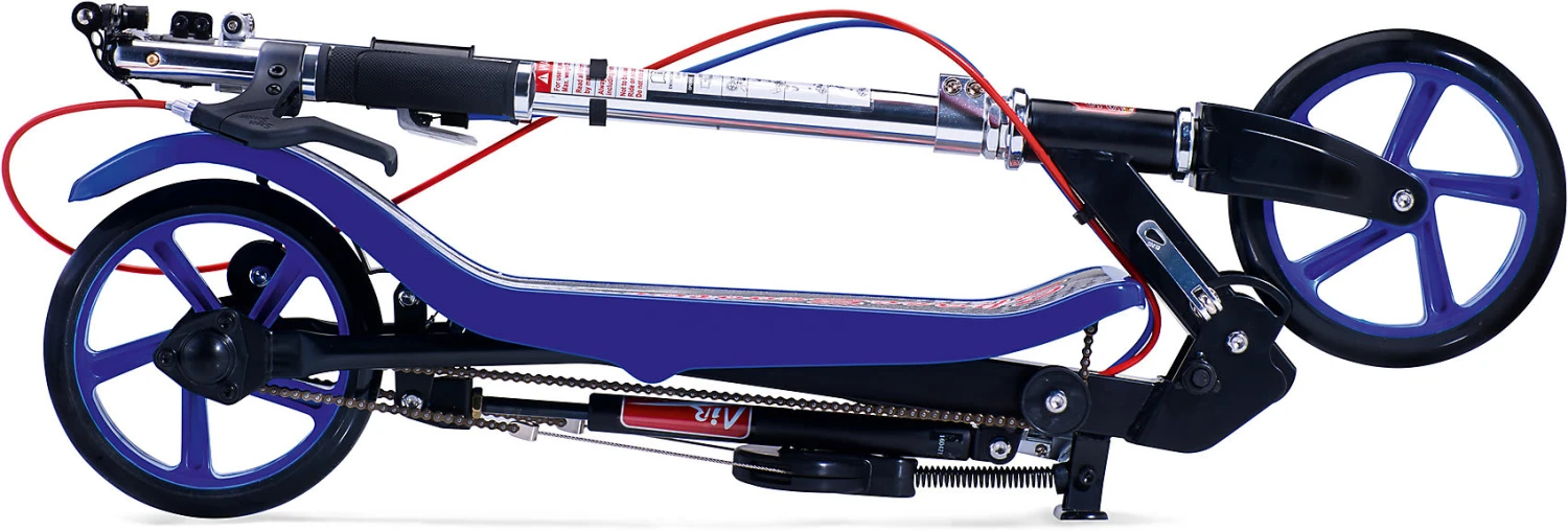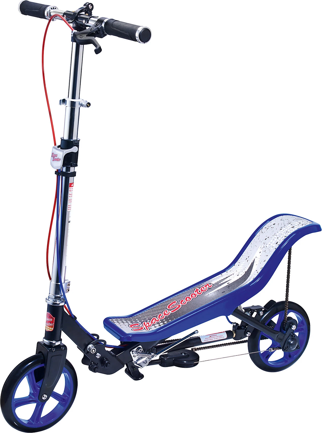 Der Space Scooter X 590 Deluxe ist ein Roller, der durch Bewegung angetrieben wird. Das 2 in 1 Prinzip gewährleistet die Nutzung als Roller und auch die Möglichkeit mit seiner n Antriebsart höhere Geschwindigkeiten spielend leicht zu erreichen. Der Space Scooter X 590 Deluxe verfügt über ein zusätzliches, drittes Zahnrad, wodurch Steigungen leichter bewältigt werden können und ein noch besserer Fahrkomfort erreicht wird. Eine hochwirksame Hinterradbremse und Premiumgriffe aus Aluminium und Gummi machen den Space Scooter X 590 Deluxe noch sicherer und beherrschbarer. Mit einem Griff kann man den Space Scooter X 590 Deluxe für den Transport zusammenklappen. Er passt sich durch seine 3-Stufen Höhenverstellung an jede Körpergrösse an. Der Space Scooter garantiert nicht nur Spass für Jung und Alt, sondern unterstützt gleichzeitig das „Bauch, Beine, Po Workout“.